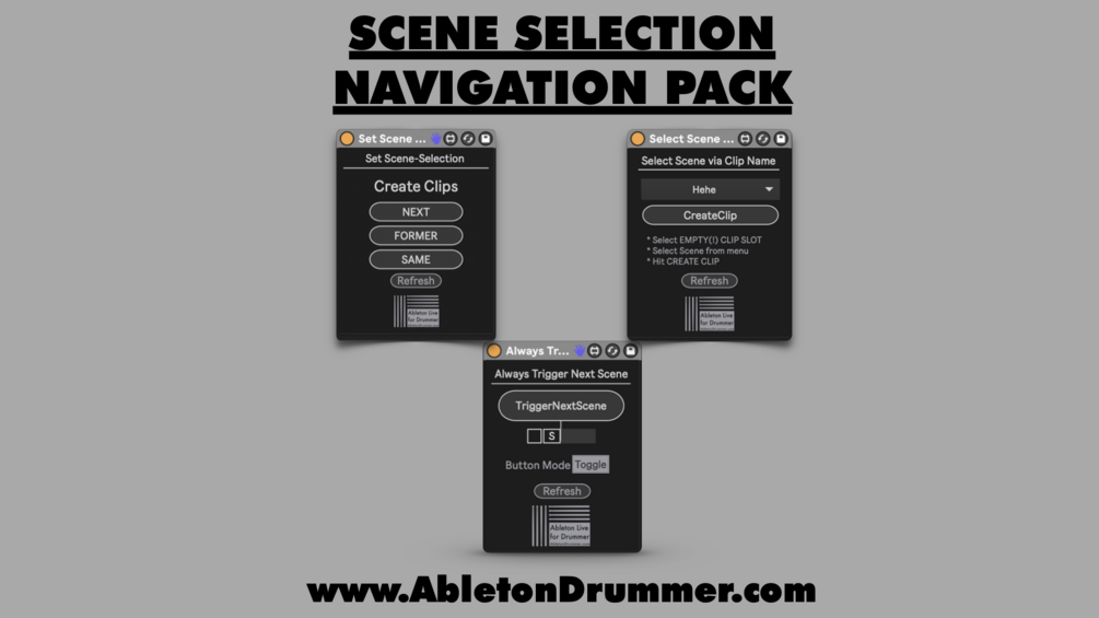 This Max for Live pack consists of 3 devices all about customising Scene Selection and Triggering in Ableton Live's Session View