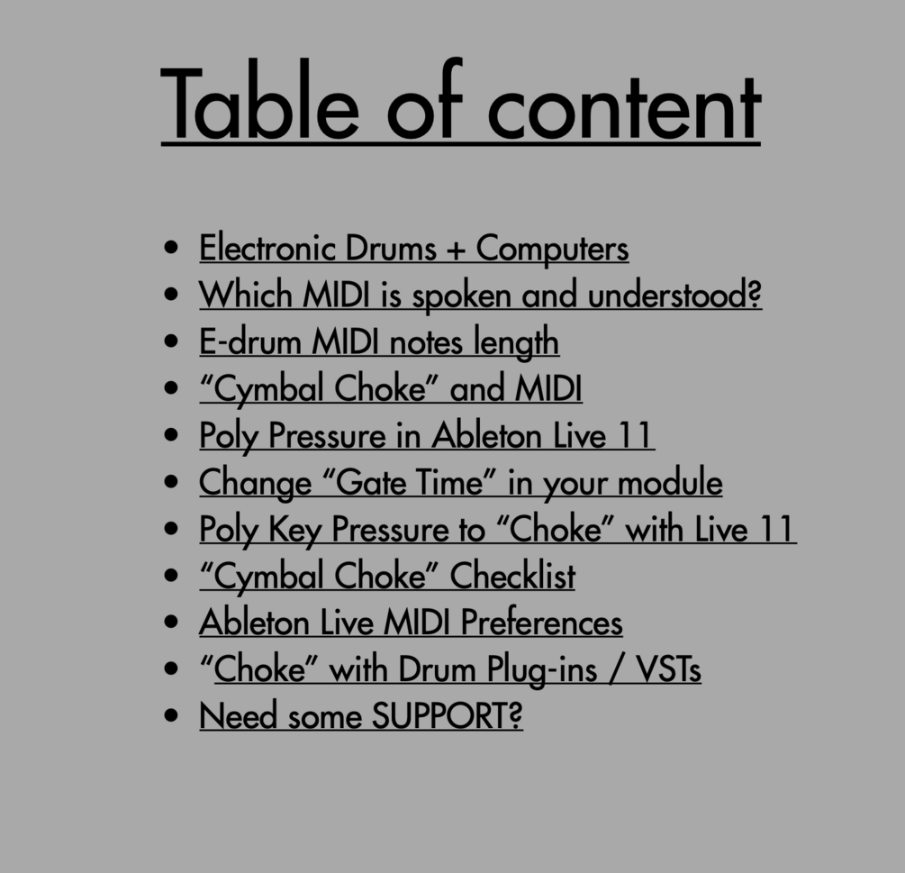 This 12 pages PDF guide explains how you can archieve "cymbal choking" (grabbing your e-cymbal pad to mute cymbal samples) with Ableton Live 11.