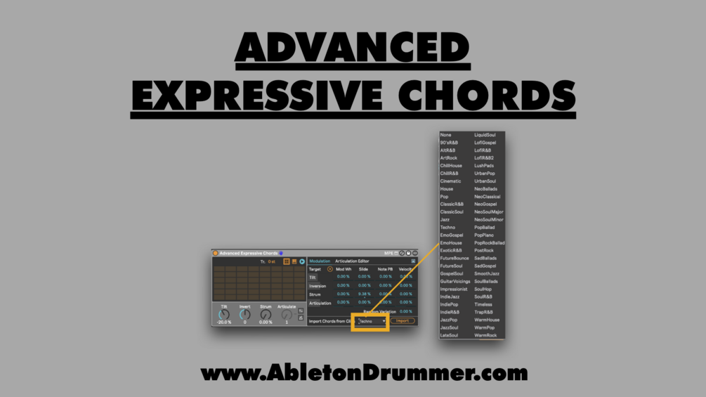 Please check out the video tutorial below to find out more about the Advanced Expressive Chords Control in Ableton Live Max for Live device.