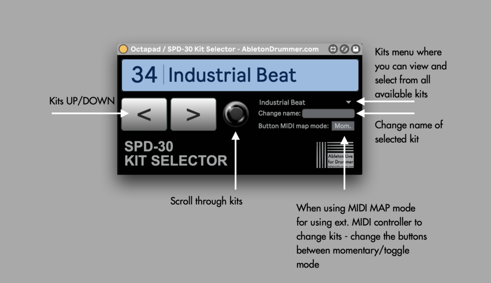 Octapad / SPD-30 Kit Selector - Max for Live device for Ableton Live