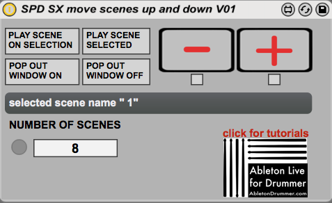 Update: This Max for Live is discontinued - as an alternative you could check out the "SPD SX Master FX Buttons to MIDI REMOTE V1" which lets you control Scene Up + Down via the Audio FX buttons of your SPD-SX. It is available as part of a 3 device bundle here: https://abletonkurse.gumroad.com/l/spdsxabletonlive