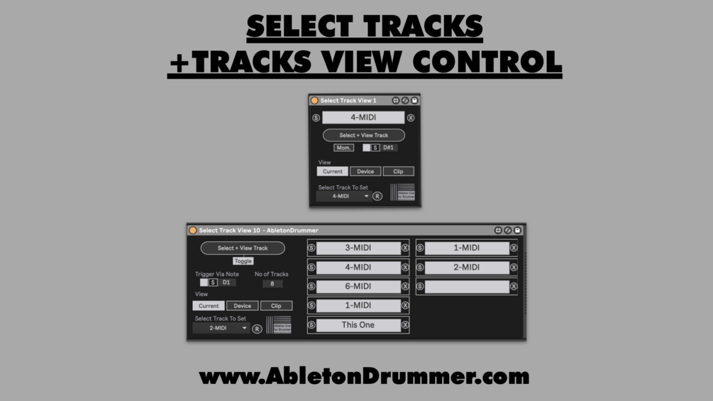 These two Max for Live devices let you control and navigate tracks in Ableton Live directly from a MIDI controller. Select Tracks allows you to assign MIDI notes or buttons to instantly select specific tracks and toggle between clip or device views. Tracks View Control expands this by letting you cycle through multiple tracks or groups with a single MIDI command, providing fast, hands-on access to your session during performance or production.