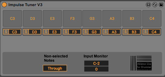 quick and easy plugin for Ableton Live, if you need to 're-tune' incoming midi notes e.g. from a midi hardware controller to the right notes to play Impulse in Ableton Live - requires Max for Live - http://www.abletondrummer.com